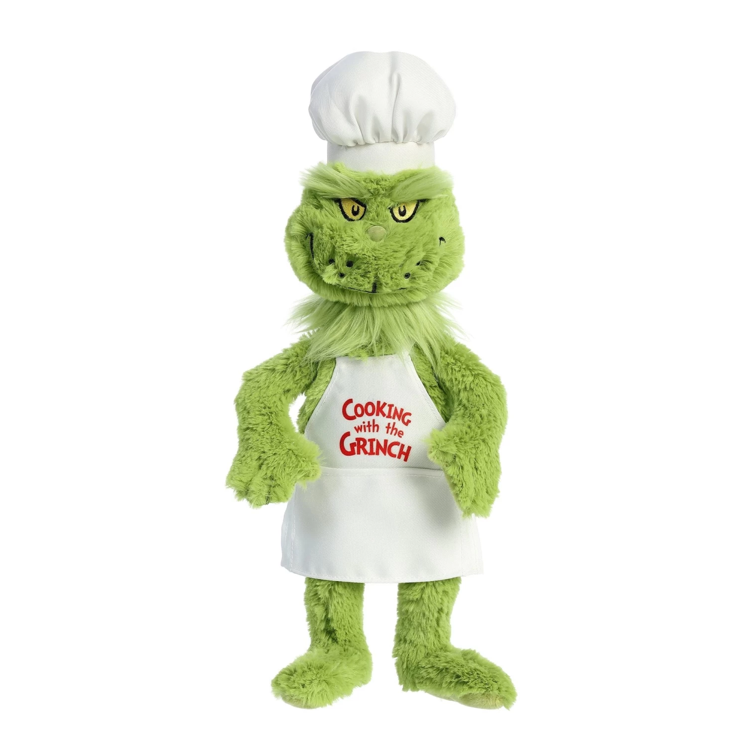 We’re cooking up something special with our Chef Grinch plush! A unique take on a beloved Dr Seuss character, Chef Grinch is styled in an adorable chef’s hat and apron that has “Cooking with the Grinch” embroidered in the center.