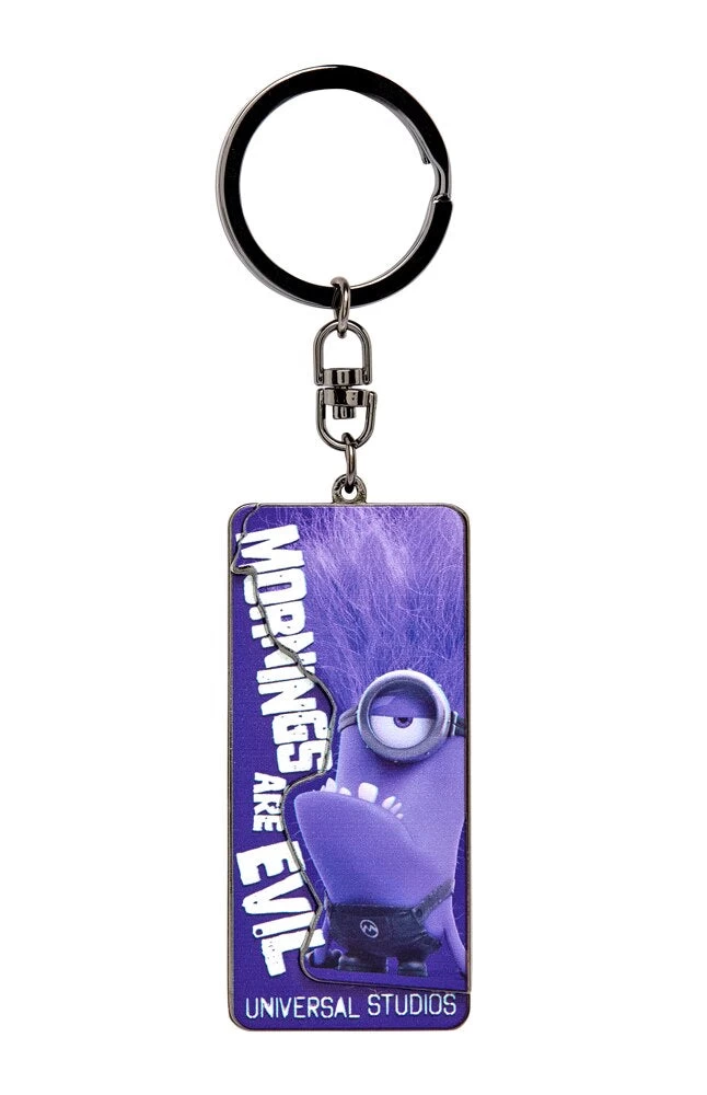 Just because purple Minions are evil, and mornings are evil, doesn’t mean this Purple Minion can’t be trusted with your keys. Design is featured on black-tone metal.