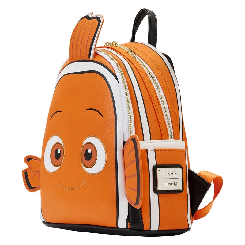 The Exclusive Loungefly Finding Nemo 20th Anniversary Nemo Cosplay Mini Backpack is made of vegan leather (polyurethane). Backpack has adjustable shoulder straps and sturdy metal hardware. Additional features include applique, embossed, and printed details. Take note of the coordinating inside lining.
