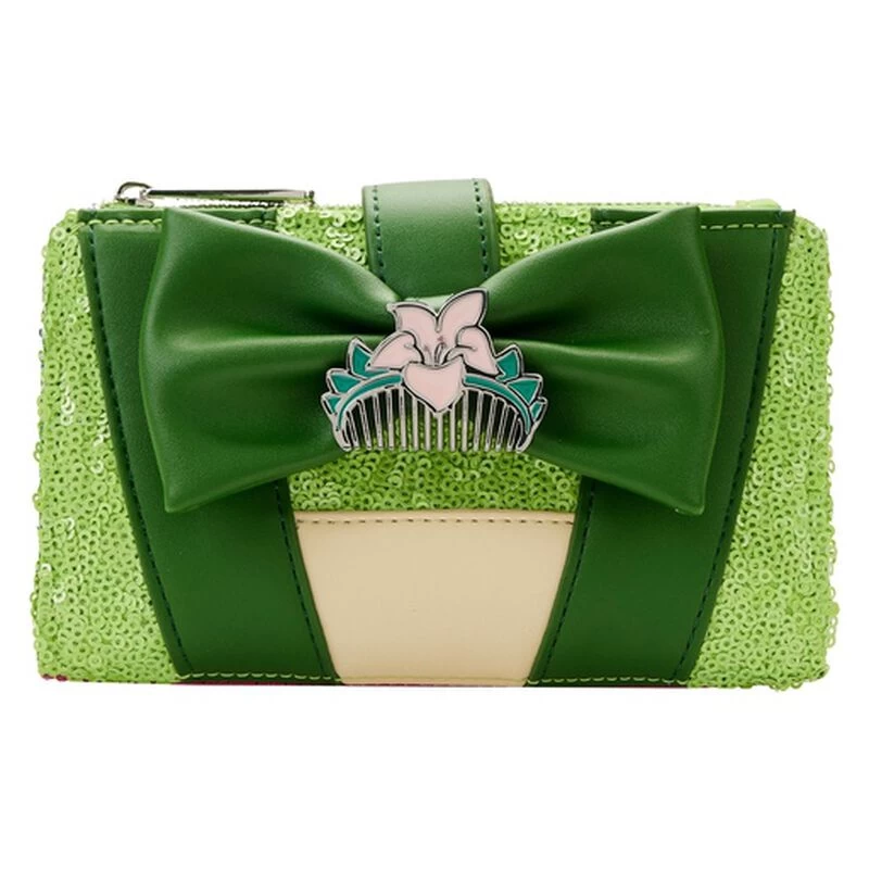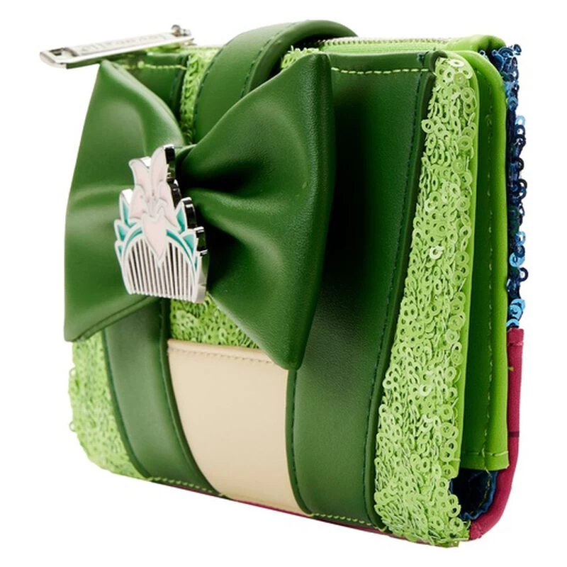 The exclusive Loungefly Mulan Sequin Bifold Wallet is made of sequins and vegan leather (polyurethane) trim. Wallet has sturdy metal hardware with plenty of snaps and zippers to keep everything in place. Additional features include applique and printed details. Take note of the coordinating inside lining.