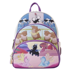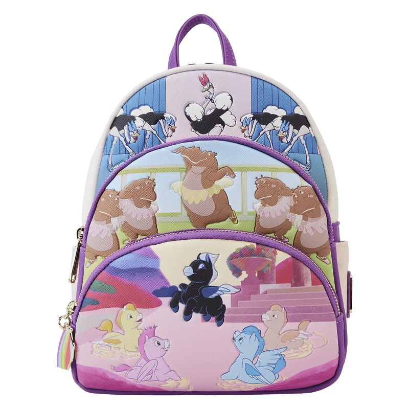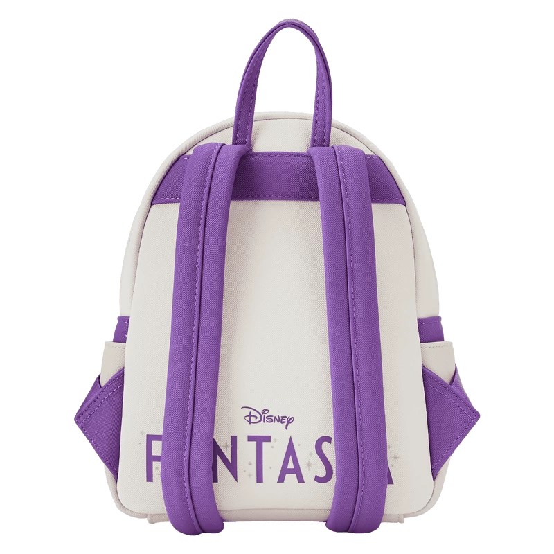 A symphony of style awaits with our exclusive Loungefly Disney Fantasia Scenes Triple Pocket Mini Backpack. Three unique scenes play out on three different pockets. Ostriches, and hippos dressed in tutus, dance while tiny winged horses frolic in the water. An enamel zipper charm of Iris and her rainbow tops off the look. On the back, the words, “Disney Fantasia” appear. Turn everyday outings into imaginative journeys with this noteworthy accessory.