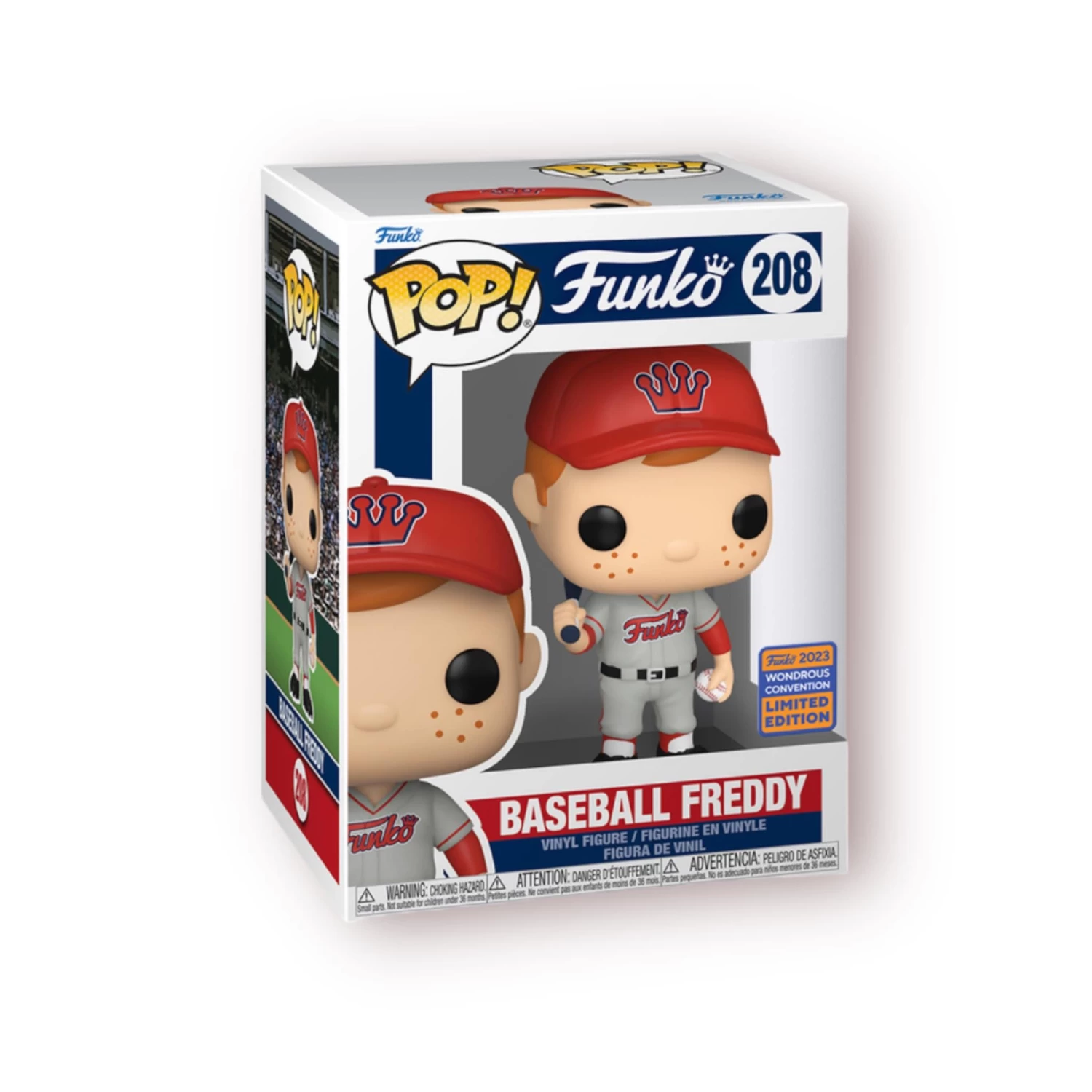 Root for the home team with Pop! Baseball Freddy! This champion of fun has donned his grey and red uniform for a day playing baseball in the sun. With ball and bat in hand, this team player is ready for the batter’s box or the pitching mound. Expand your sports collection by recruiting this exclusive Pop! Baseball Freddy to your team. Vinyl figure is approximately 4.25-inches tall.