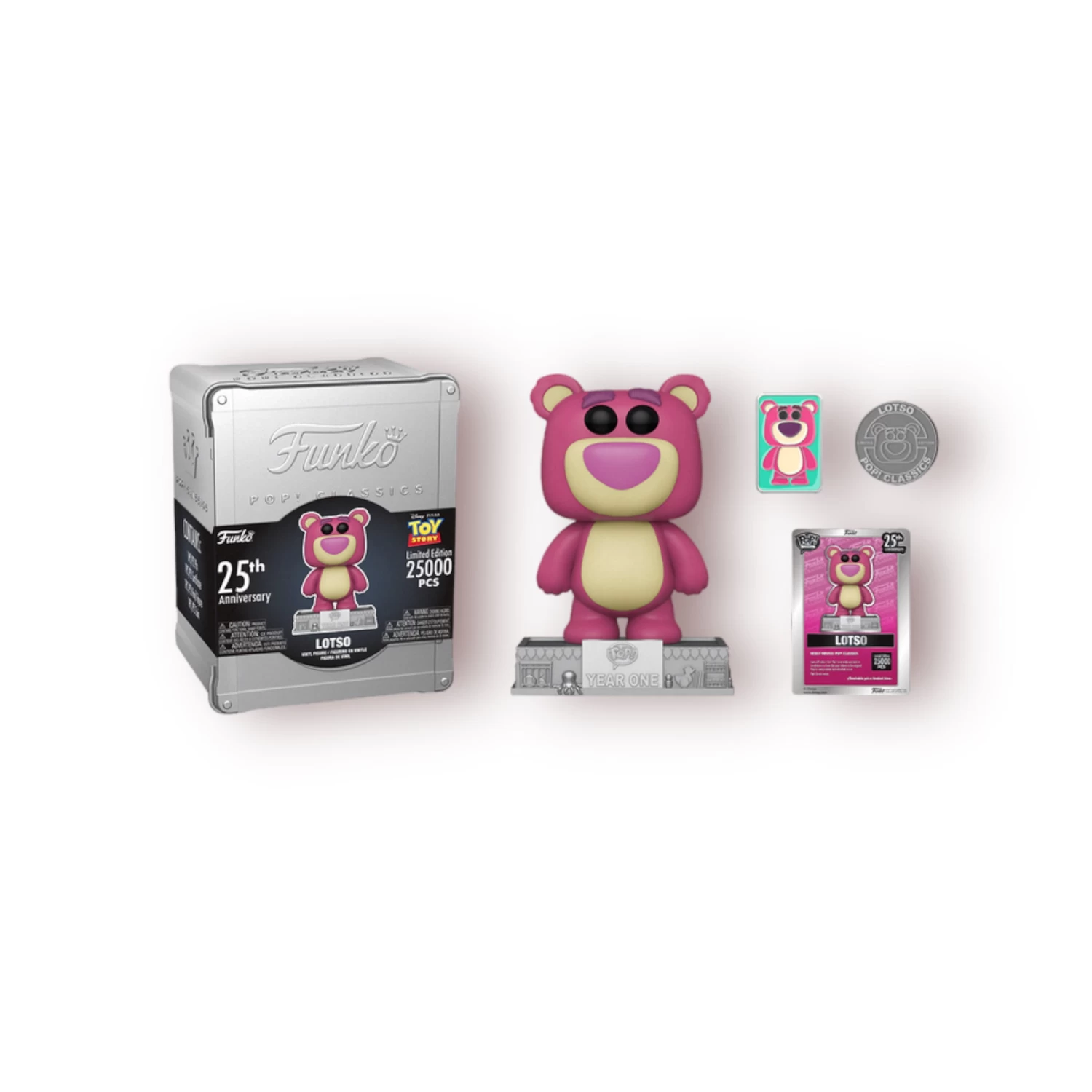 This Pop! Classics figure also includes an enamel Pop! Pin and a stainless-steel Pop! Coin, both featuring Pop! Lotso’s face, as well as a foil Certificate Card detailing his biographical information. Only 25,000 of this limited-edition collectible were made! Vinyl figure is approximately 4.4-inches tall.