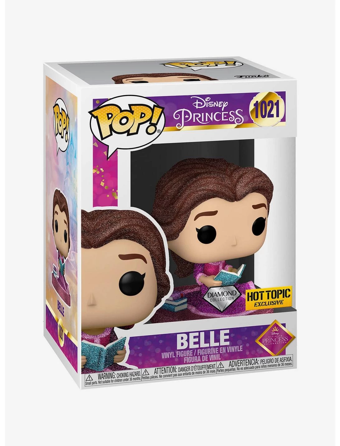 Be our guest and add this Pop! to your Beauty and the Beast collection. It features a sparkly version of Belle reading a book.Â