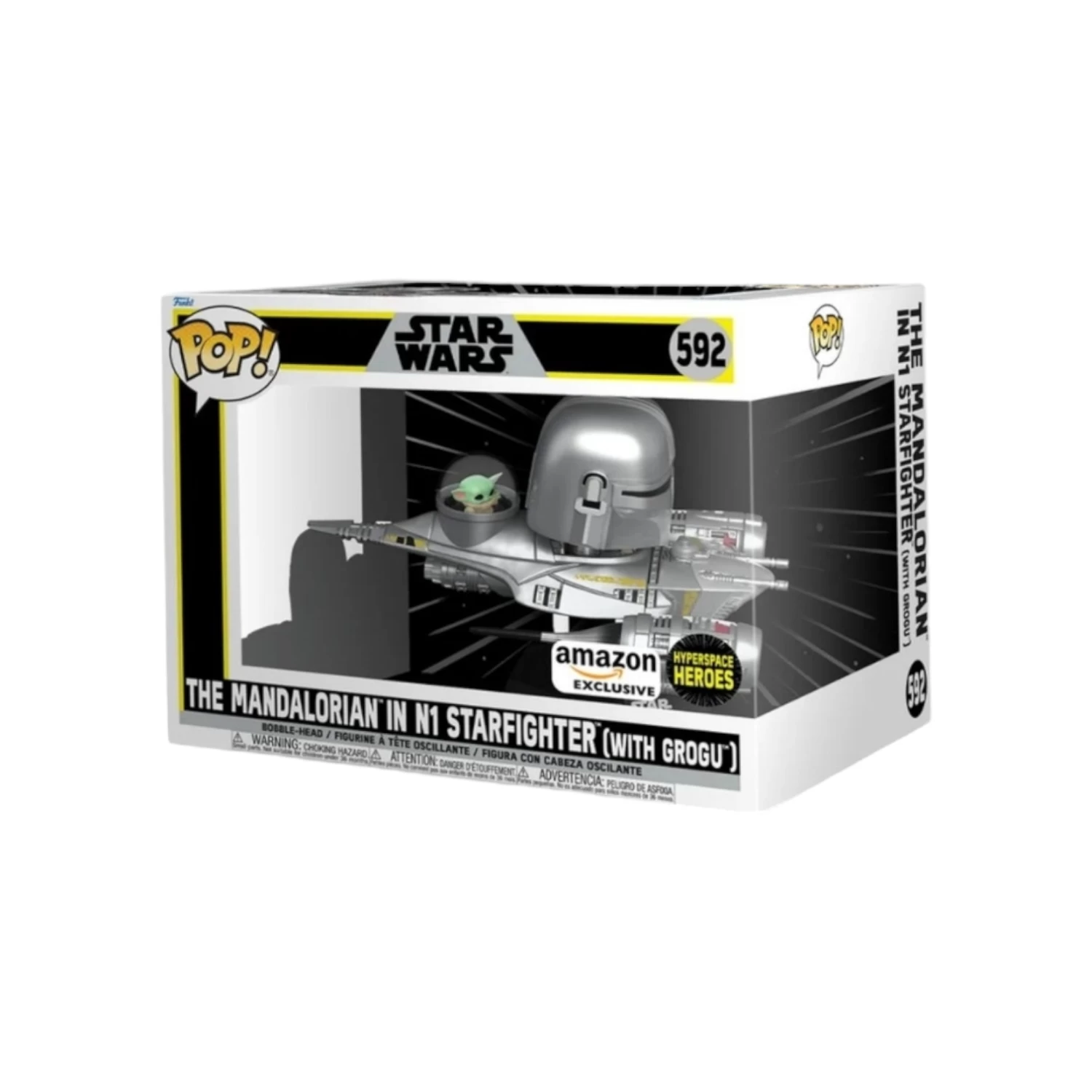 Celebrate the most stellar fandom of them all with Pop! The Mandalorianâ„¢ and his adorable foundling, Pop! Groguâ„¢! Take off with them on their next adventure with this exclusive Pop! Ride featuring Pop! The Mandalorianâ„¢ on N1 Starfighter (with Groguâ„¢)! Give this duo a safe place to land in your The Book of Boba Fettâ„¢ collection. Vinyl collectible is approximately 4.55-inches tall. Find more Funko products at Amazon.