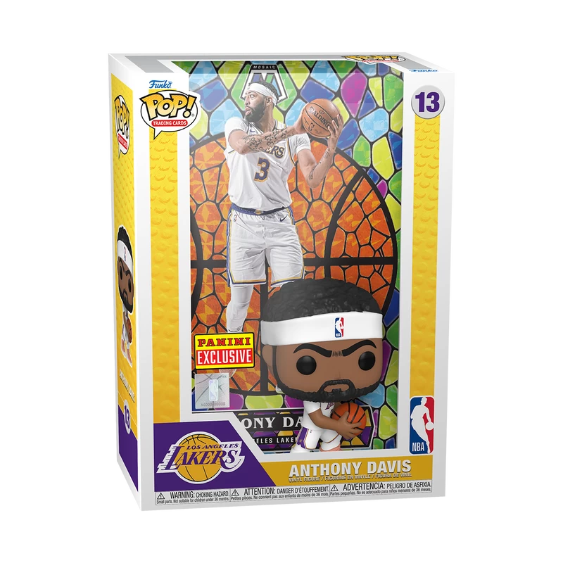 Commemorate an iconic sports trading card for your NBA collection with the Pop! Trading Card Anthony Davis. The collectible features a Pop! Anthony Davis figure, wearing his white Los Angelos Lakers uniform, which matches the included mosaic trading card art. This exclusive collectible is the perfect addition to your Pop! Trading Cards collection and comes prepackaged in a protective case that can be hung on your wall!