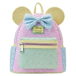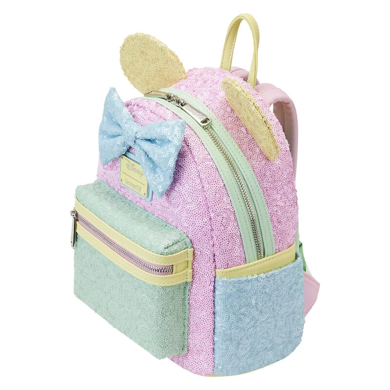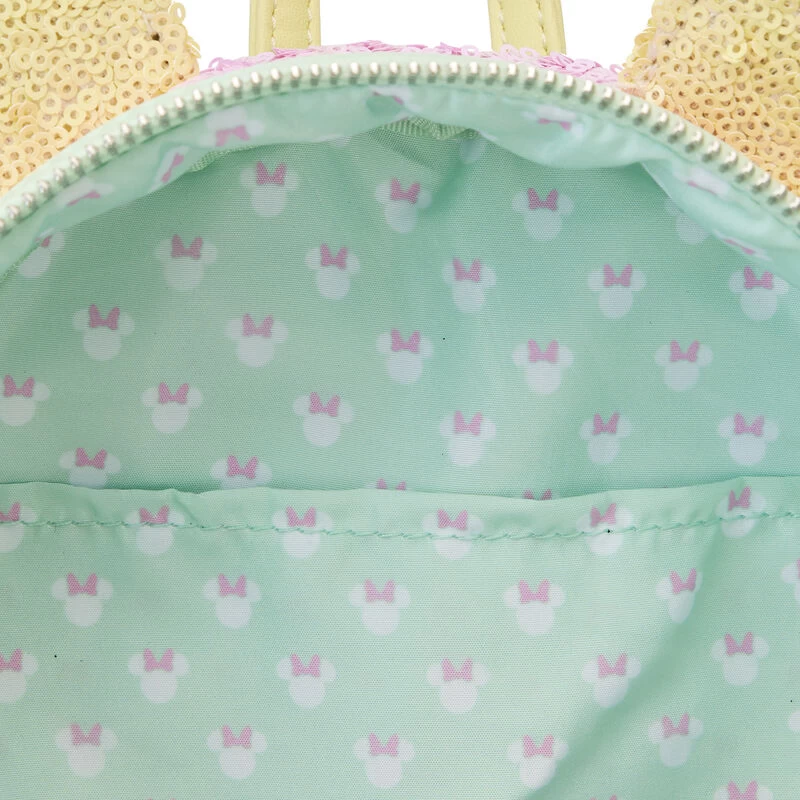 Take an extra sparkly bow! Shine with our exclusive Loungefly Disney Minnie Mouse Pastel Sequin Mini Backpack. Minnie Mouse’s signature 3D applique bow, at the top of the bag, is covered in blue sequins. Her pastel yellow sequined ears pair perfectly with an array of glittery soft colors on the front zipped pocket and side panels. It’s the perfect accessory for showing off your sparkling personality while turning everyday outings into enchanting adventures. Act fast to collect this 2,800-piece limited edition Loungefly exclusive.
