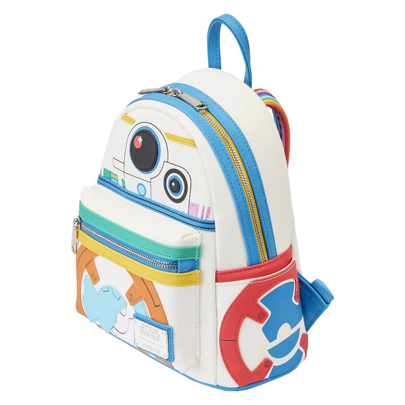 This astromech is rolling out a brand-new look! The exclusive Loungefly Star Wars™ BB-8™ Pride Mini Backpack and Pop! features bold, bright colors across the droid’s iconic features. Bringing the loveable companion to life, this mini backpack gives shape to BB-8’s iconic form with multicolored markings across his face and body. On the back, BB-8 makes an encore appearance near the bag’s rainbow-striped shoulder straps. This exclusive bundle also includes a Diamond Collection variant of Bobble-Head Pop! BB-8 with rainbow markings. Act fast to collect this 4,000-piece limited edition Loungefly accessory; supplies are limited.
