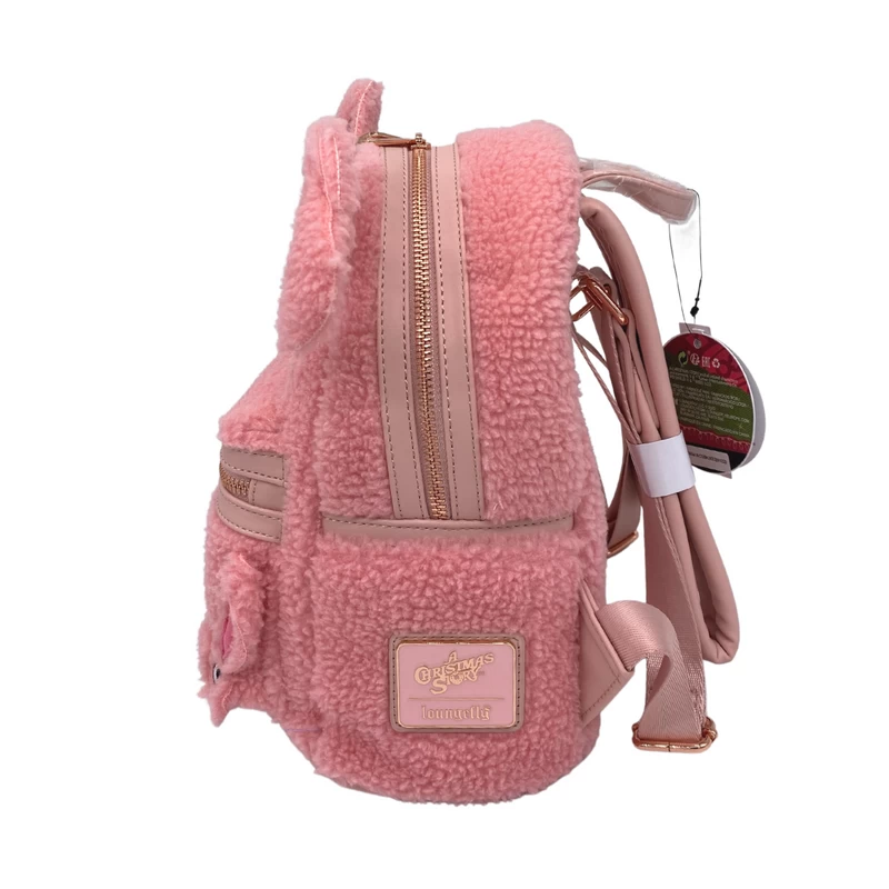 Features: Side pockets, adjustable shoulder straps, rose gold hardware, rabbit ears, tail and slippers applique, embroidered and printed details.