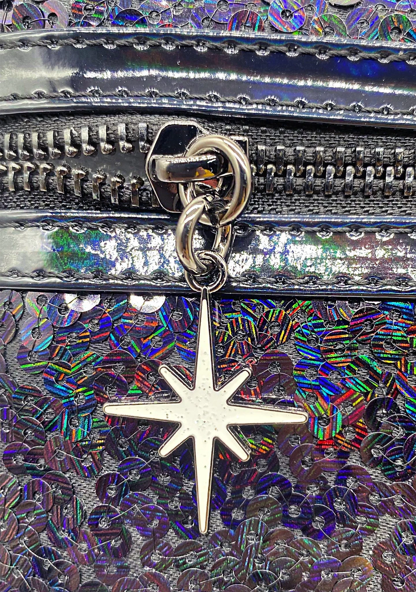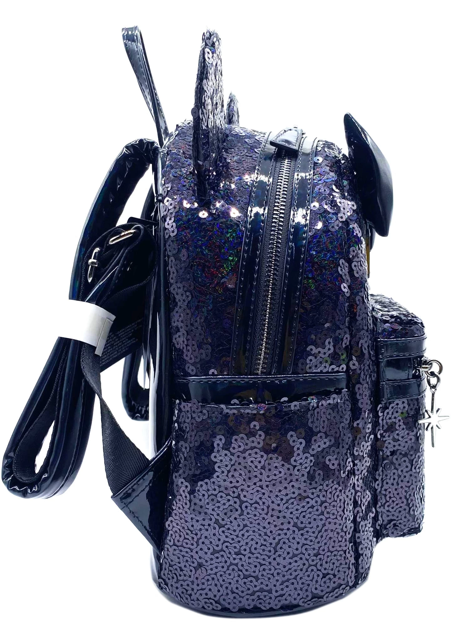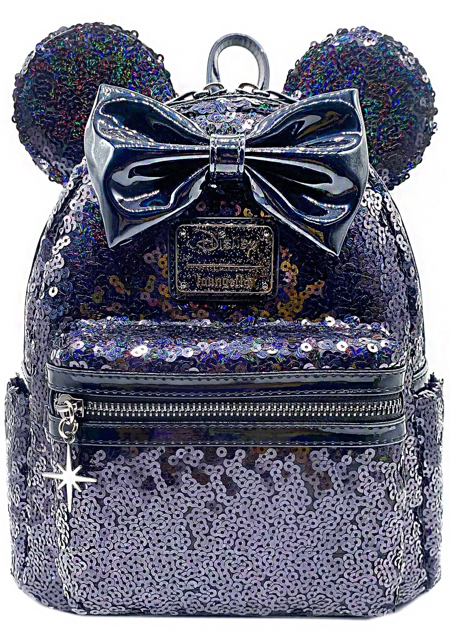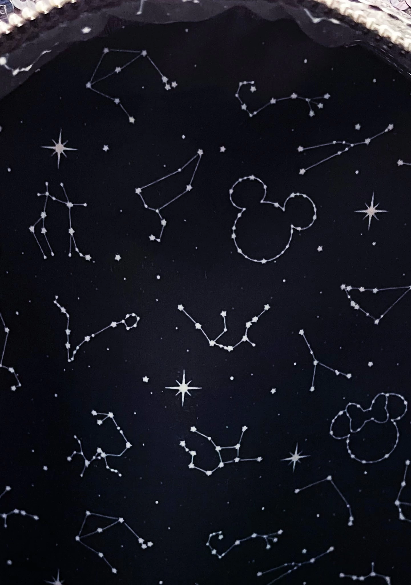 What dreams are made of!! The dark sister to our golden sequin Minnie and the holographic sequin Minnie, introducing our official and exclusive LOUNGEFLY x LASR x DISNEY Celestial Dreams Black Holographic Sequin Minnie Mini Backpack! Featuring a darling constellation-filled interior lining and north star zipper charm, we are over the moon excited to introduce the newest addition to the LASTYLERUSH exclusive sequin Minnie family – the LOUNGEFLY X LASR X DISNEY CELESTIAL DREAMS BLACK HOLOGRAPHIC SEQUIN MINNIE MINI BACKPACK! Gorgeous in every way, it’s the dark sequin Minnie backpack for the sophisticated Disney misfit. Featuring a breathtaking all-over holographic black sequin exterior, iconic Minnie Mouse ears, front zip pocket, easy access side pockets, gunmetal hardware, black glitter logo plaque adjustable straps, and obsidian black holographic patent leather Minnie Mouse bow applique, this black holo sequin Minnie backpack is giving beautiful cosmic energy and radiating vibrations out of this world! Definitely a must-have for all exclusive Loungefly collectors, classic Disney fans, and Minnie Mouse backpack collections!
