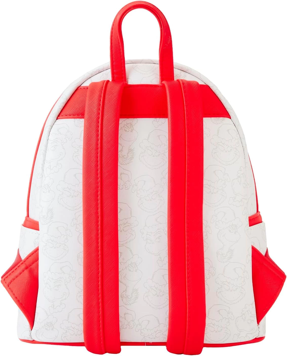 - Featuring incredible detail to bring The Grinch to life, this Loungefly mini backpack is made of vegan leather (polyurethane), has a front zipper compartment, side pockets, and adjustable back straps.
