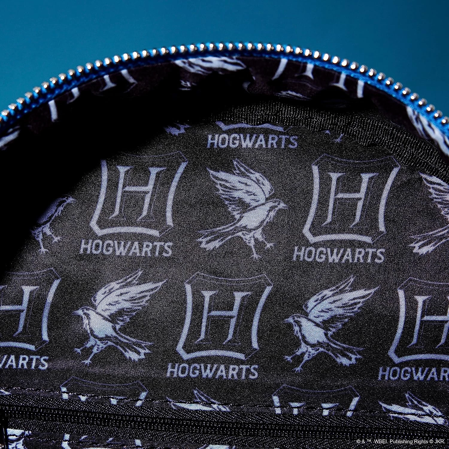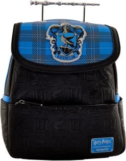 - From Harry Potter ‘Choose Your House’ Collection, this mini backpack features Ravenclaw House! Featuring incredible detail to bring Ravenclaw House to life, this Loungefly mini backpack is made of vegan leather (polyurethane), has a front zipper compartment, side pockets, and adjustable back straps.