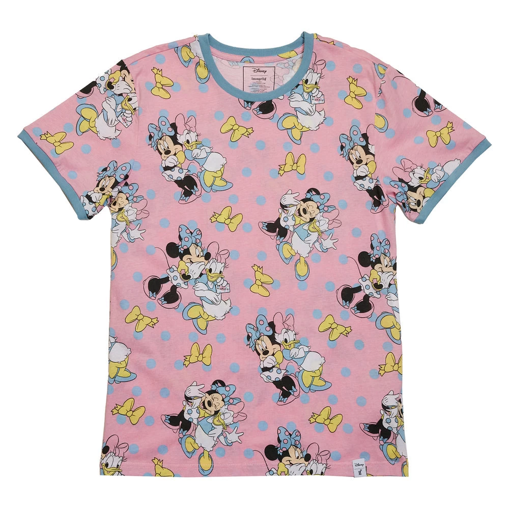 The Loungefly Disney Minnie Mouse and Daisy Duck Dots Unisex Ringer Tee is super soft and made of 100% cotton jersey.