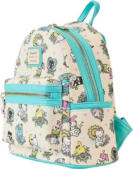 - Front zipper pocket with Hellow Kitty Zipper Charm Pull. Adjustable shoulder straps. Top carry handle. Printed Fabric Lining.