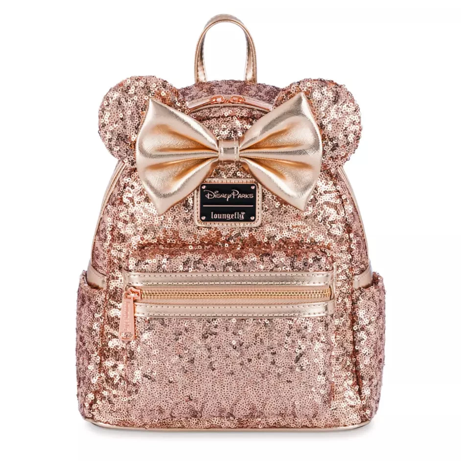 Hello, gorgeous. This Minnie Mouse sequin Loungefly mini backpack speaks to you in the universal language of glamour with an accent of bling. The allover sequin design features Minnie’s signature ears and bow, and every inch shimmers in rose gold. The sparkle is all you.