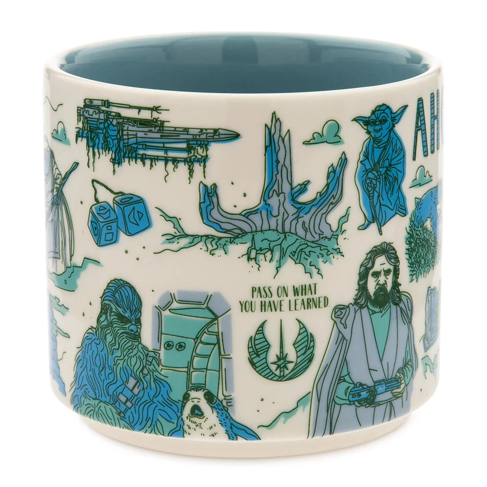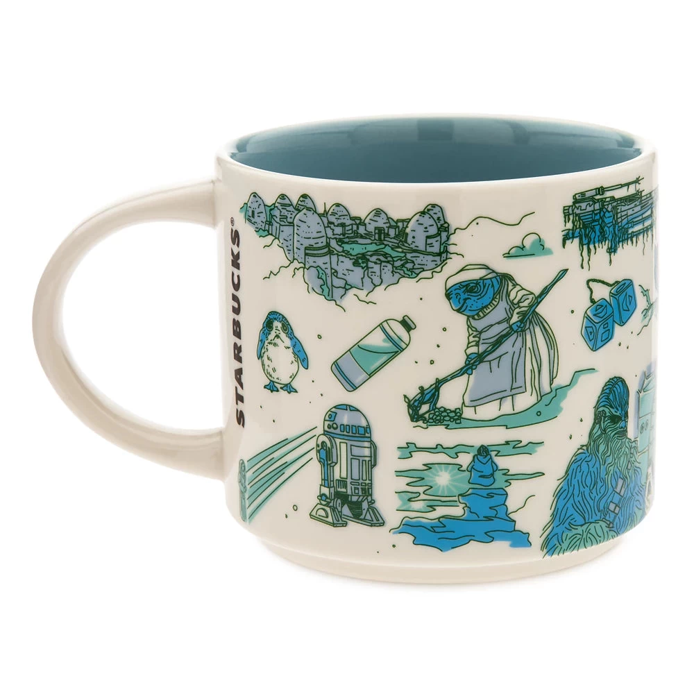Celebrate May the 4th with this Ahch-toStarbucks mug. It features designs of notable characters and locations from the Star Wars franchise and is part of the Starbucks Been There Series.