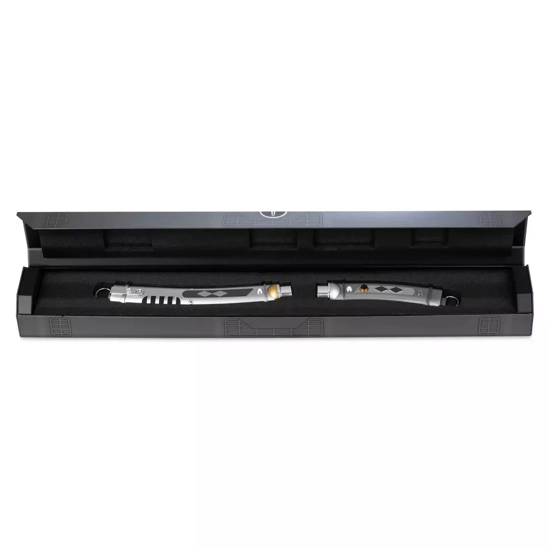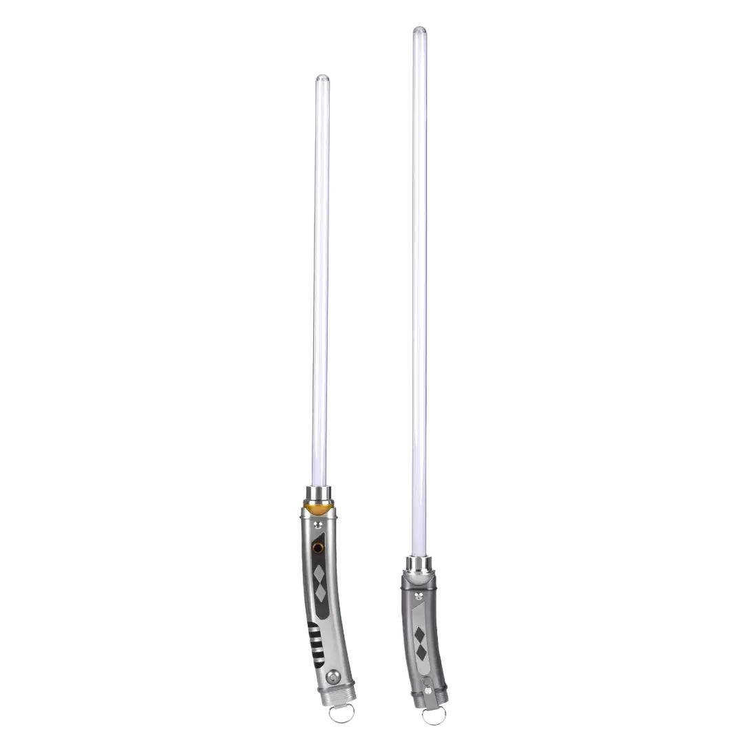 Feel at one with the Force with this pair of Ahoska Tano Legacy Lightsabers. Ahsoka, former Padawan to Anakin Skywalker and a veteran in the battle of the Clone Wars, is known for her strong leadership and skill. This detailed set of reproductions features a Single-Bladed Lightsaber and Shoto Saber, with their distinctive curved hilts and white blades, and includes impact sensors and unique impact sound effects.