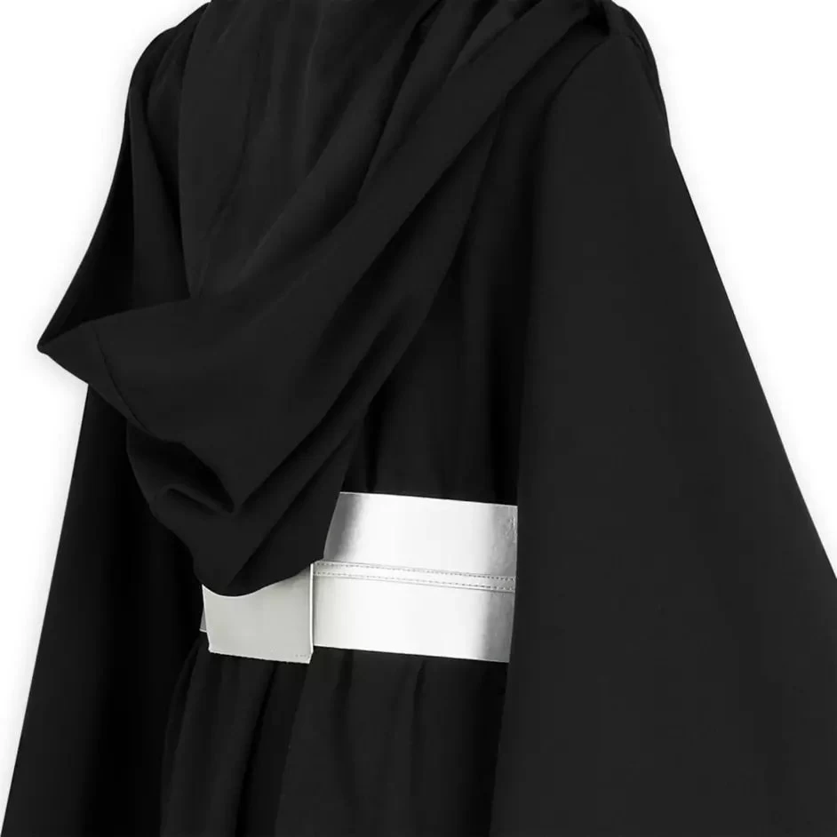 Get into character as you prepare for your next Star Wars adventure with this dramatic black cosplay dress. Inspired by the costumes seen on Dryden Vos’s yacht in Solo: A Star Wars Story, it features bell sleeves, detachable hood accessory, and bold simulated silver leather belt so you’ll become the hero of your exciting Star Wars mission.