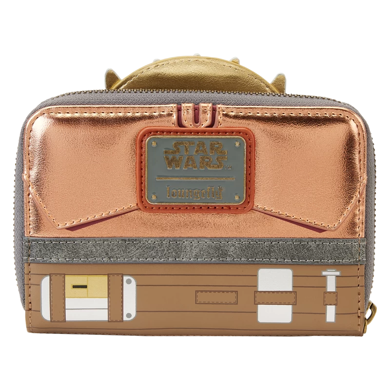 Forge a new piece for your wardrobe with the Star Wars™ Celebration Exclusive Loungefly Armorer™ Cosplay Zip Around Wallet. Taking the shape of the formidable Mandalorian™ metalworker, the front of this accessory features a shiny metallic helmet against a distressed background. The back displays details of her armor and toolbelt. Perfect for fans looking to keep one of their favorite Star Wars characters close, this mini backpack will keep your materials safe as you walk the way of the Mandalore. Act fast to collect this exclusive Loungefly accessory; supplies are limited.