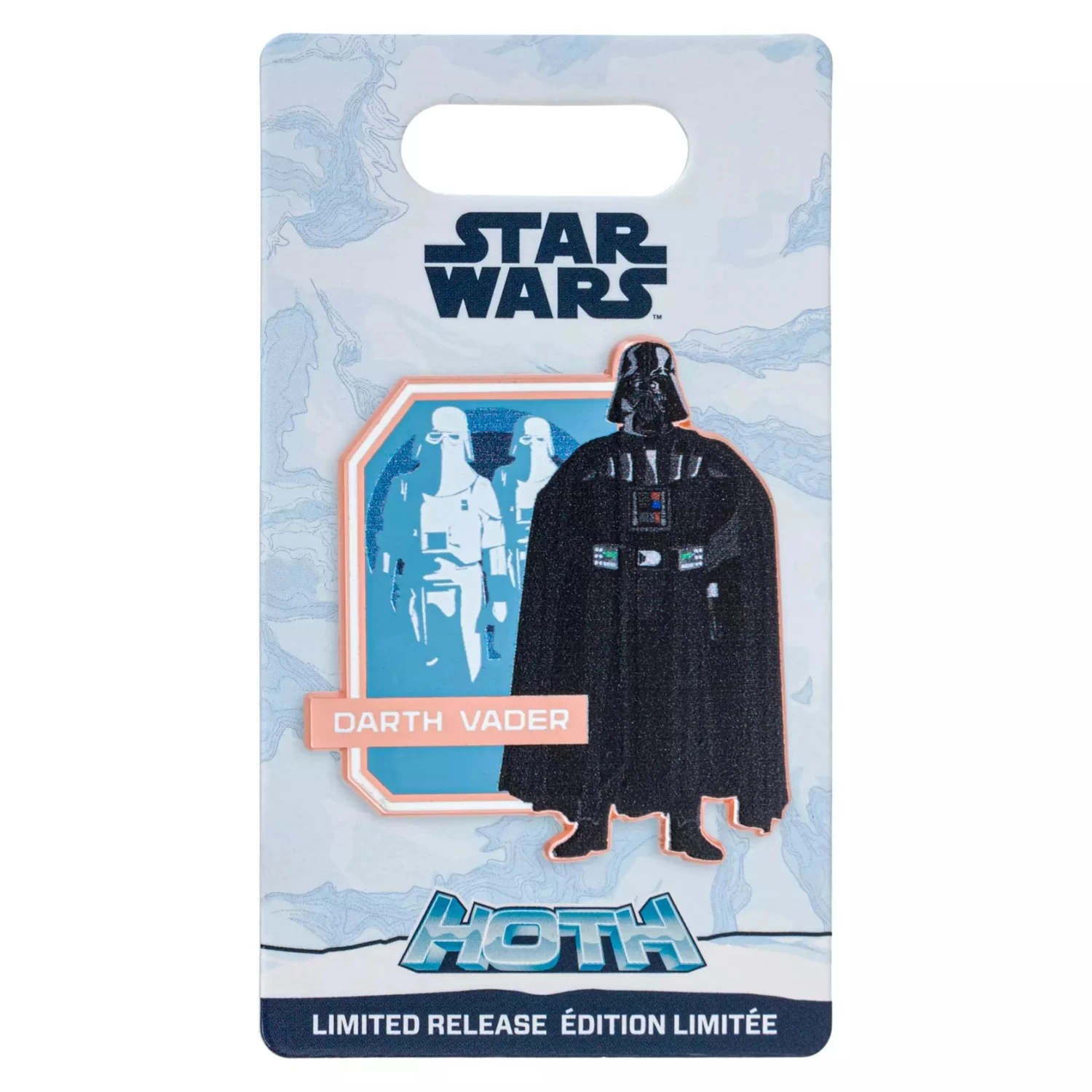 Sith Lord Darth Vader and his Snowtroopers are pictured during their attack on the planet Hoth for this cloisonné Star Wars pin with laser print graphics, a keepsake souvenir of that galaxy so far, far away.