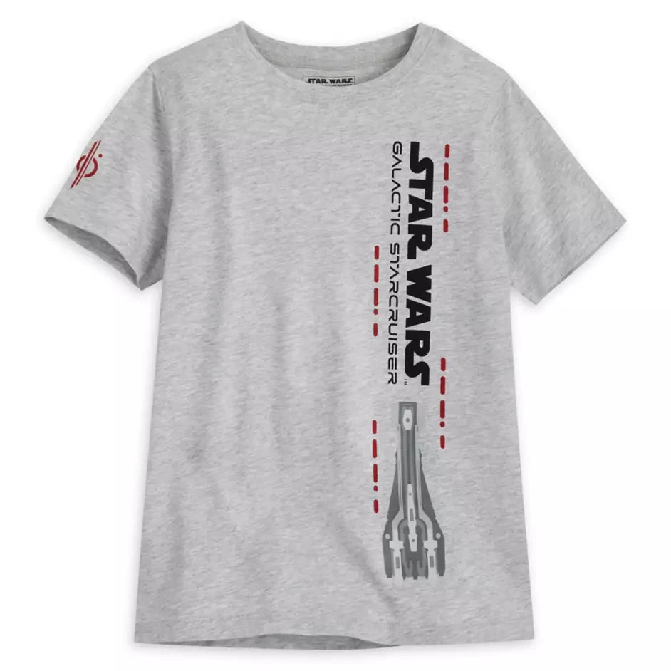 Celebrate your Star Wars: Galactic Starcruiser experience in the casual style and cool comfort of this souvenir heathered tee with screen art logo on front plus distinctive sleeve icon.