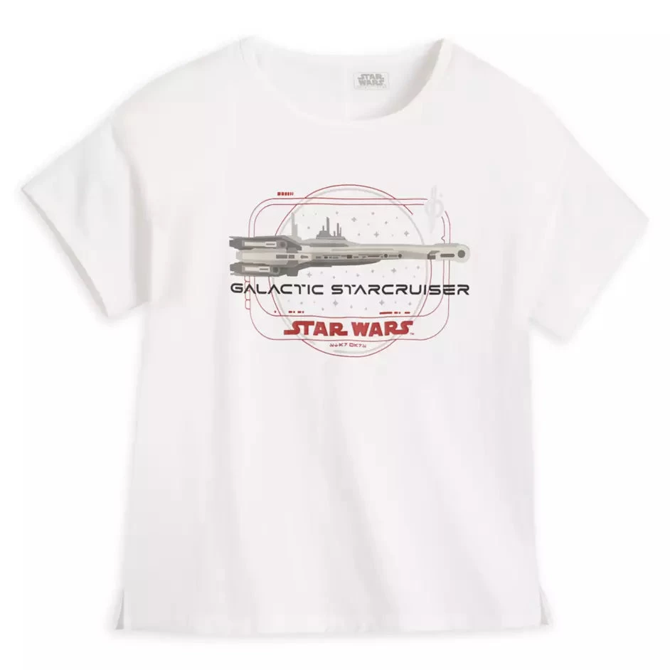 Celebrate your Star Wars: Galactic Starcruiser experience in the casual style and cool comfort of this souvenir scoop neck tee with screen art logo on front plus seamed back and vented hem.