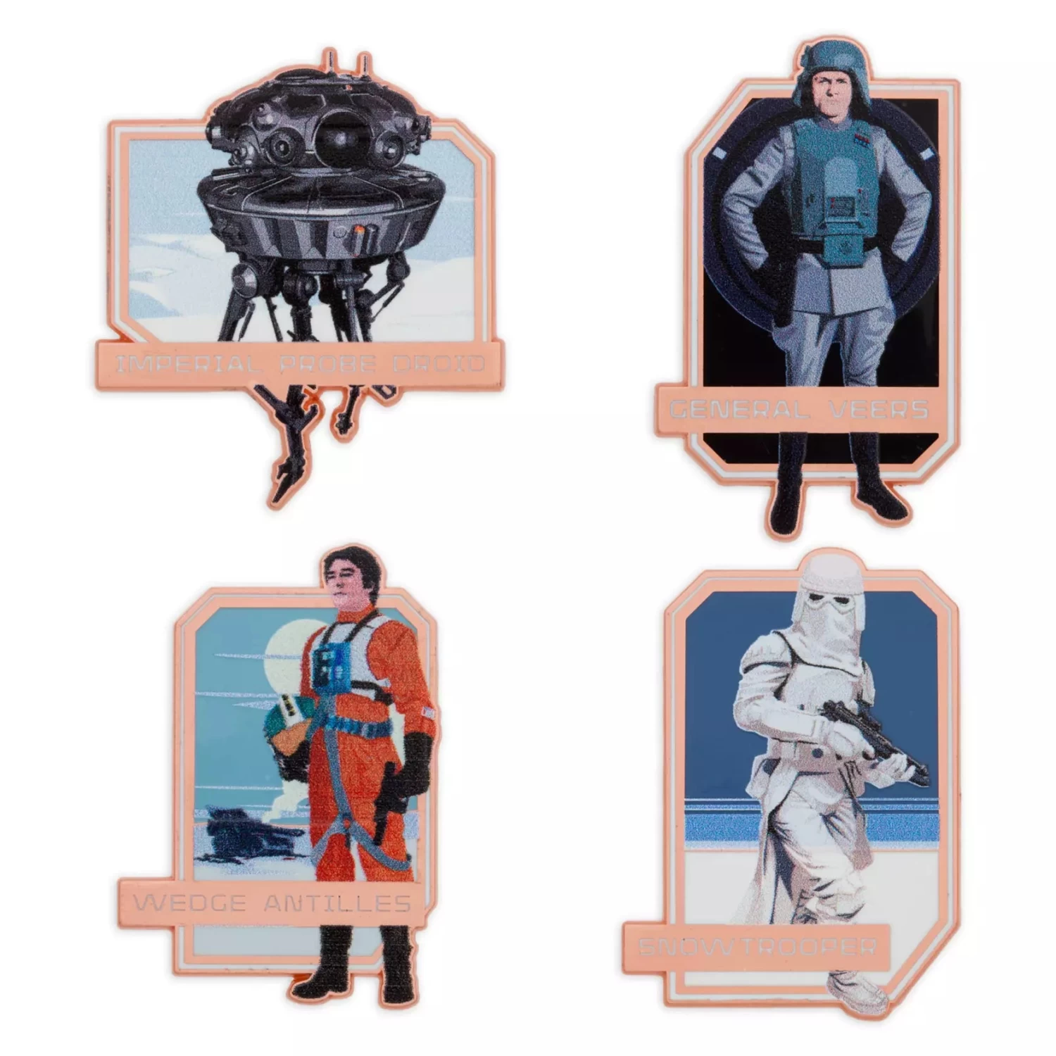- Each box contains two randomly selected pins from 12 overall designs in the Hoth series*