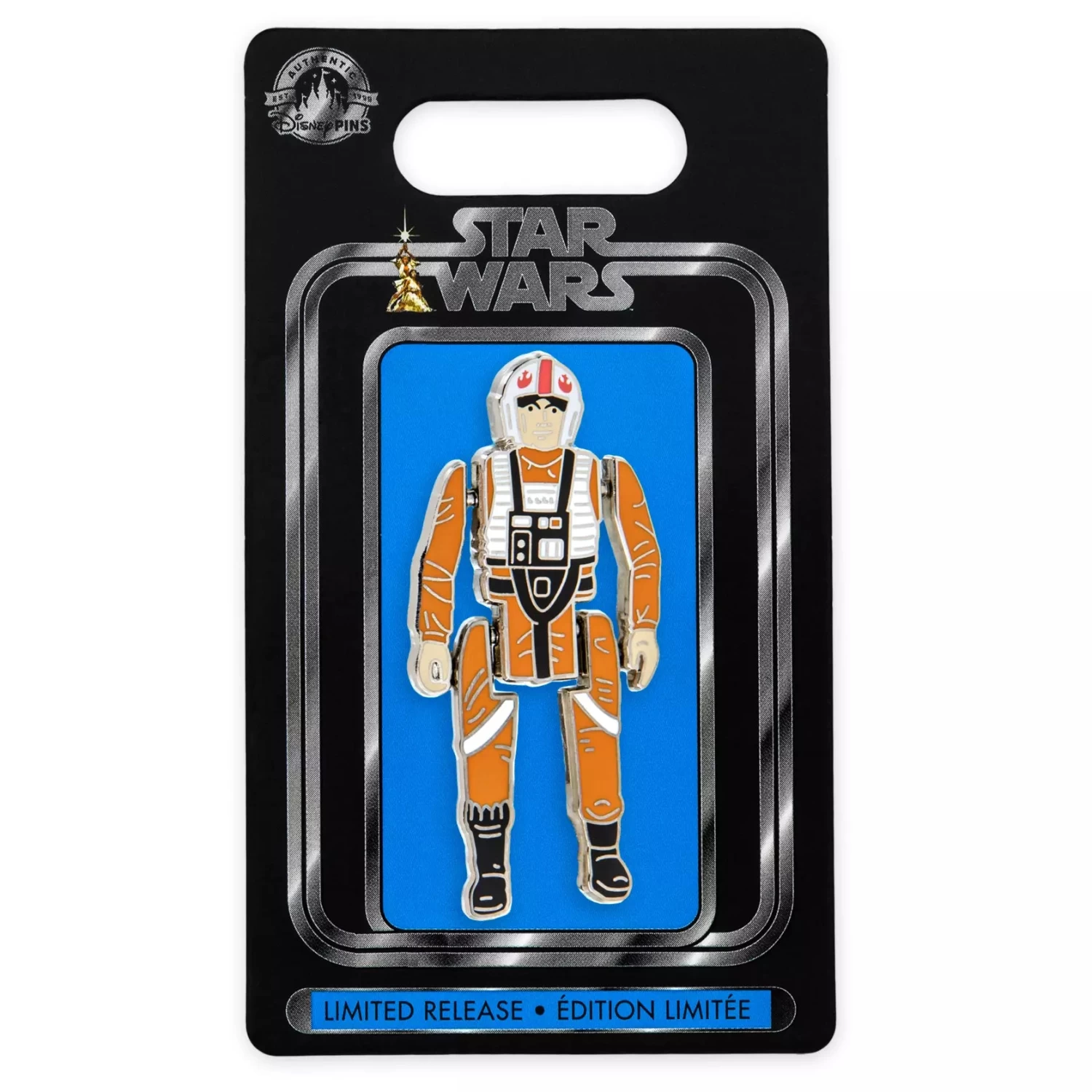 May the Force of nostalgia be with you while replaying fond memories of Star Wars original trilogy action figures with this limited release pin depicting Luke Skywalker in his X-Wing pilot flightsuit. Collect ’em all!