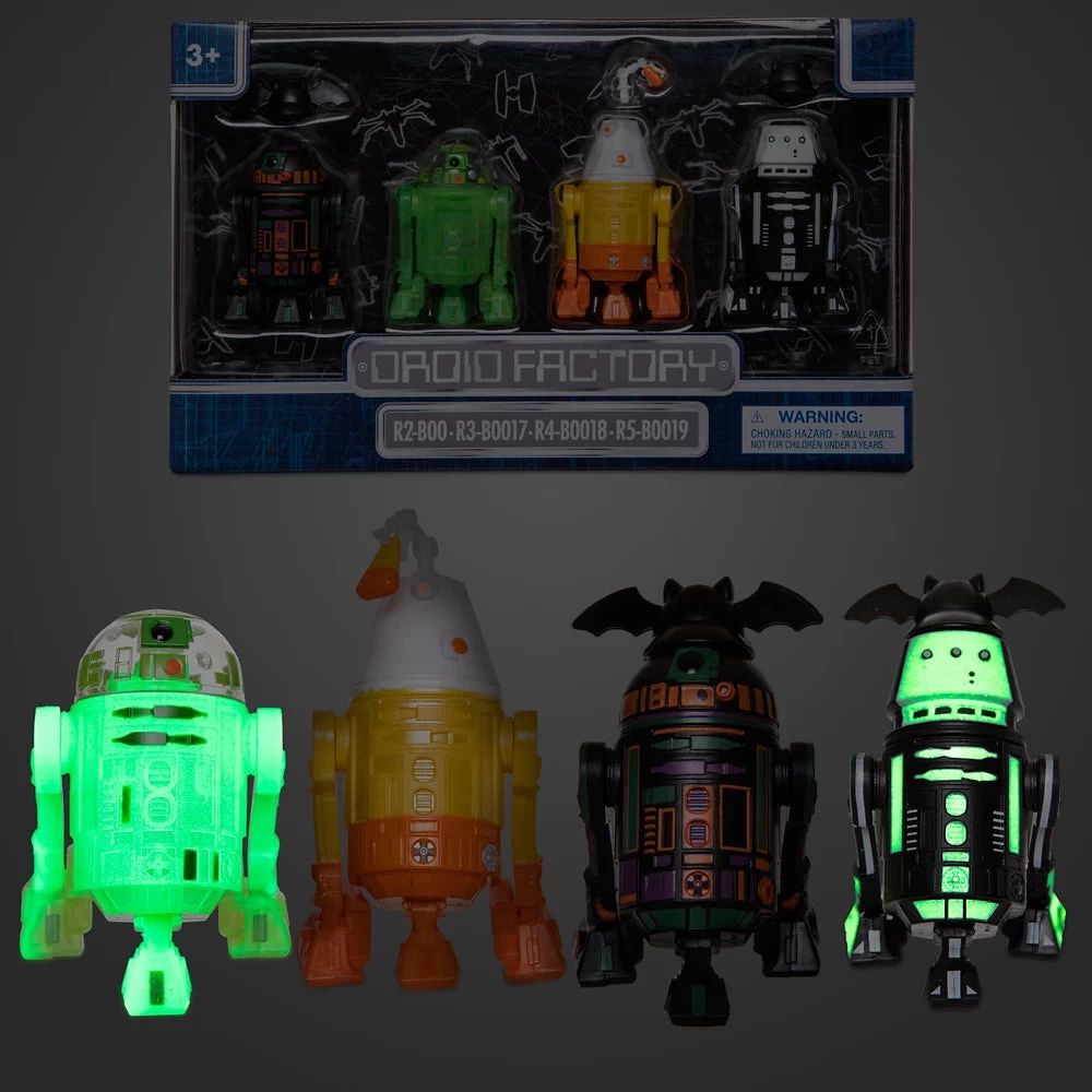 Have a Happy Halloween with this set of four spooky themed droids! Straight from the droid factory, this set includes R2-B00, R3-B0017, R4-B0018, and R5-B0019 – each with their own Halloween inspired design.
