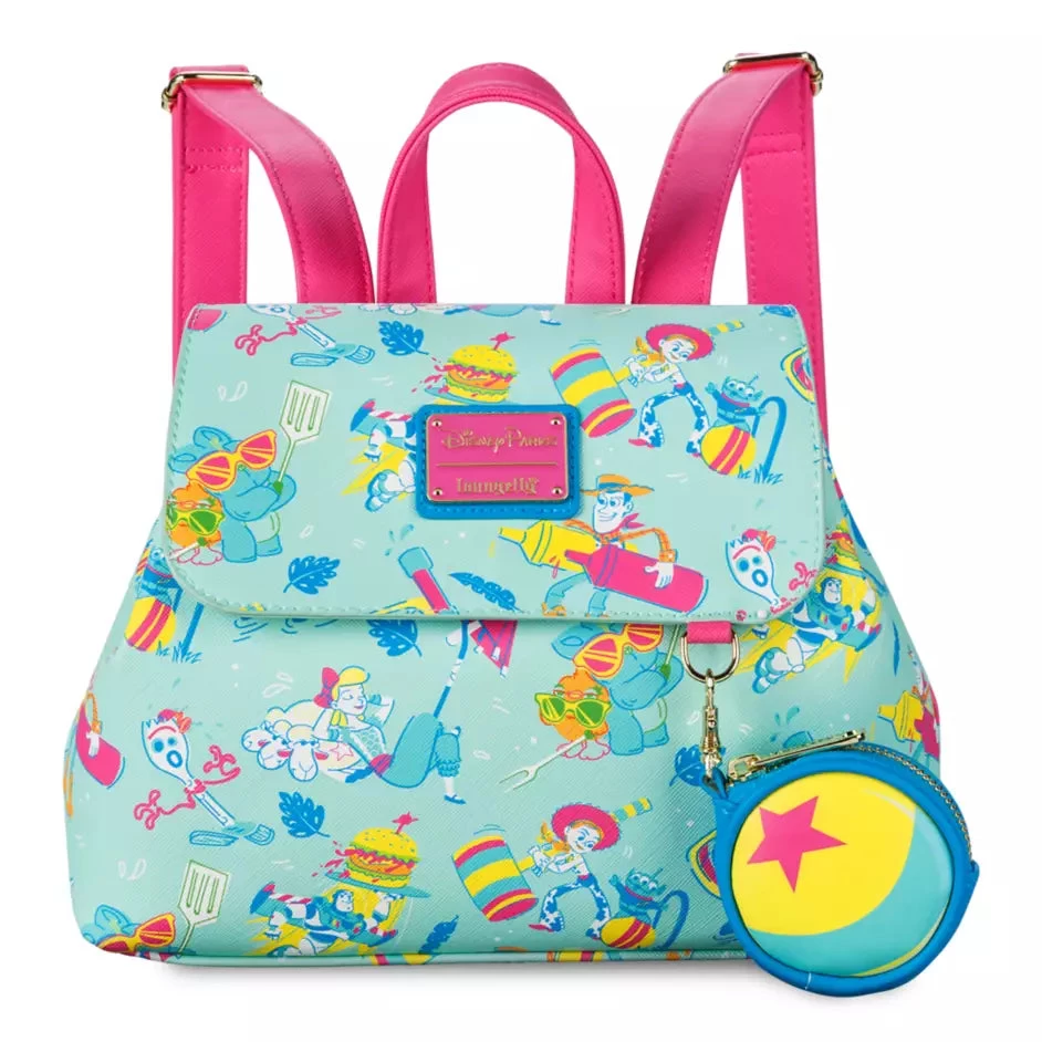 Spend a fun summer in the company of your favorite Toy Story characters who are featured in the colorful allover print on this mini backpack by Loungefly. Woody, Buzz, Jessie, Ducky and Bunny are among those pictured enjoying some outdoor activities and snacks on the simulated leather bag which comes with a Pixar Ball coin purse.