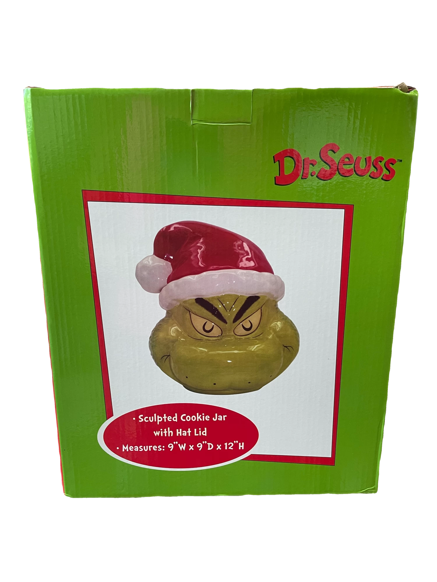 Universal Studios Dr. Seuss Grinch Sculpted Cookie Jar With Hat Lid