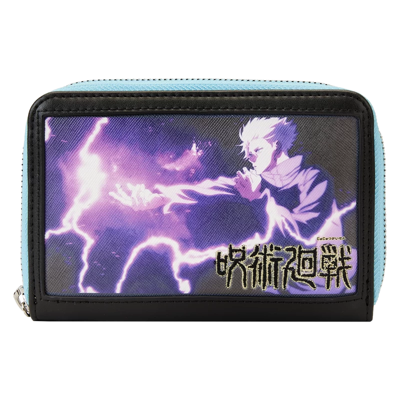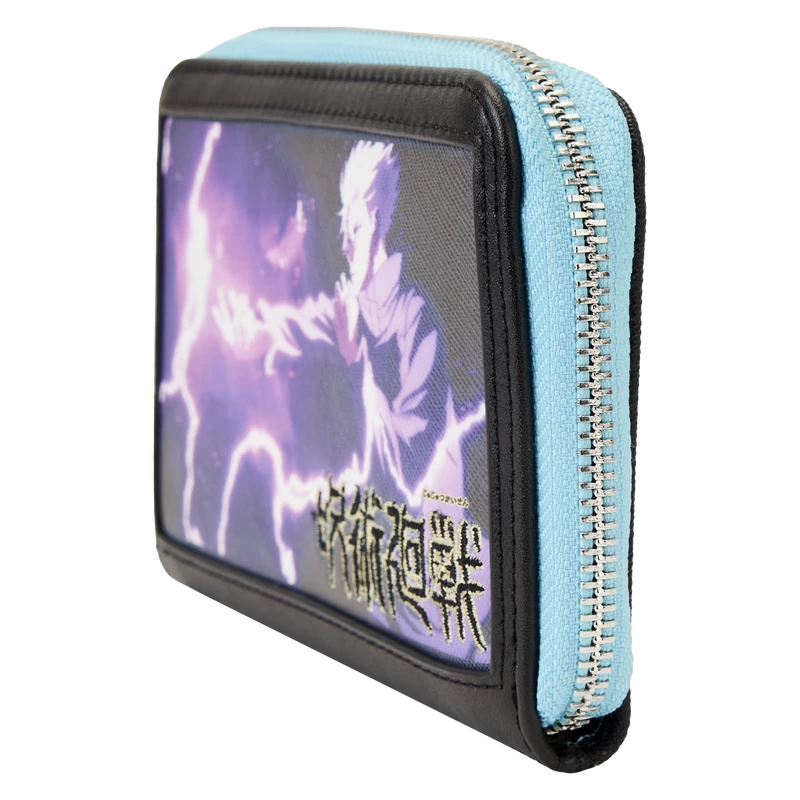 Explore limitless possibilities to save the world! The WonderCon Exclusive Loungefly JUJUSTU KAISEN Satoru Gojo Zip Around Wallet shows a significant moment in the sorcerer’s journey. On the front, Gojo uses the Hollow Purple technique. On the back, a symbol shows his hand and signature blindfold. With five slots for holding cards and a clear slot to hold ID, this heroic accessory is perfect for sorcerers and students alike. Act fast to collect this 700-piece limited edition Loungefly exclusive.